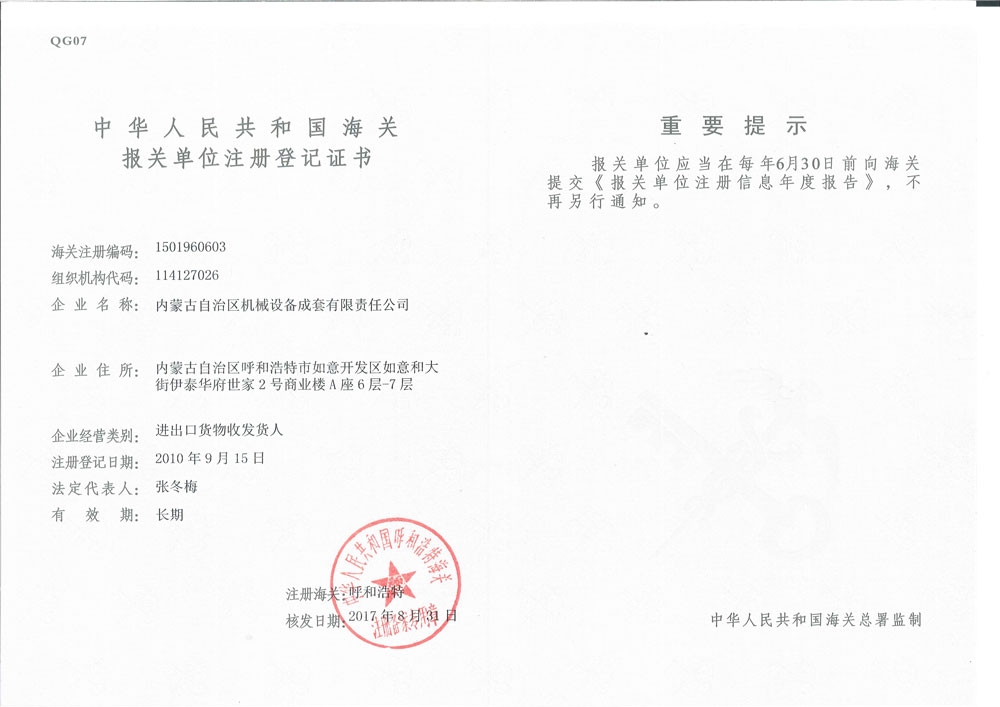 內(nèi)蒙古自治區(qū)機械設備成套有限責任公司營業(yè)執(zhí)照